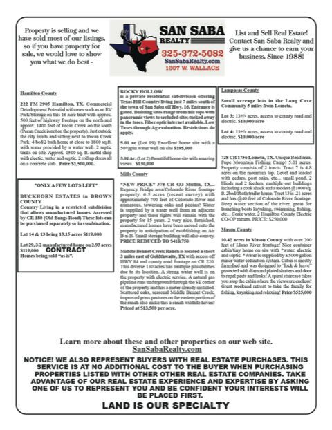 The Central Texas Real Estate Guide has been published since April of 1995. Several companies that advertised with us in the first issue are still advertising with us and have been in every issue that has been published. We appreciate each and every client that puts their trust in us. Our motto is "Helping YOU make money" and we will always work hard to do that for you.