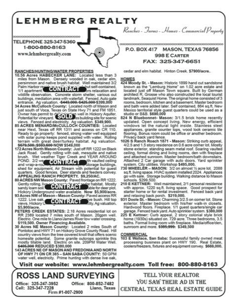At Vaughn Advertising we are excited about helping you find the property that you have always dreamed of. The Real Estate agents listed in the Central Texas Real Estate Guide have a wide variety of land, homes and commercial properties that will perfectly fit your needs. When contacting these agents, please let them know you found their ad in the